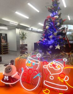 熊本学習センターでは、中等部の生徒に手伝ってもらいながら、玄関にクリスマスツリーを飾りました。